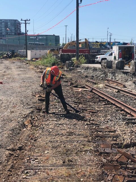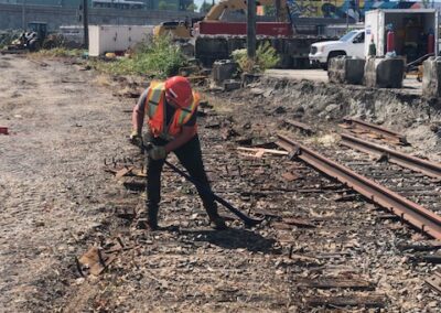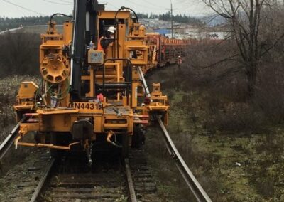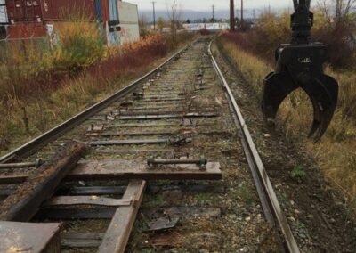WestCan Rail worked directly with CN and their work train on this project, spanning from Okanagan Lake to Vernon. Our crew loaded directly onto the train as we removed the ties from the line.